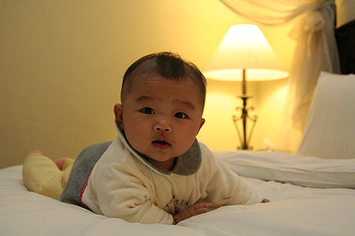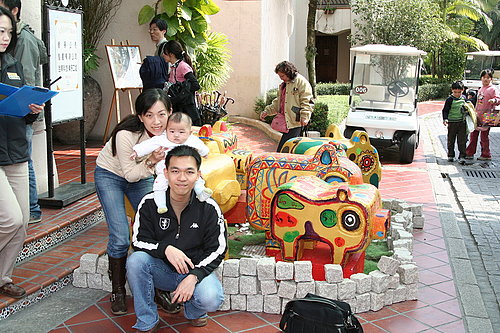 拔拔媽咪真的遵守約定帶我去渡假了,這是我們ㄧ家三口第一次外宿,由於沒有外宿經驗媽咪幫我準備好多東西,我有專屬的mickey旅行袋裝滿換洗衣物ㄋㄟㄋㄟ尿布,連奶瓶刷都帶出門了,飯店還貼心幫我準備嬰兒床讓我晚上不用跟拔拔媽咪擠大床,其實...我懷疑是拔拔媽咪不想讓我當電燈泡所以才替我張羅小床舖,check in時還升等為”蜜月套房”,連拔拔也不知道為什麼呢!該不會是因為我是小朋友所以有特別的服務阿?媽咪說待在理想大地裡有種出國渡假的感覺,不過我實在感覺不出來,尤其是第二天早上我明明喝完ㄋㄟㄋㄟ睡的正香,硬是被挖起來陪那兩老吃早餐,媽咪又還沒幫我開食物禁令,卻要我看滿桌香香的食物卻不能動手,唉~對我而言真是無趣的ㄧ件事,於是被他們這麼一操害我ㄧ整個上午睏的不得了,連遊園的心情都沒有了只好ㄧ直睡覺,拍照時就任由媽咪”把玩”,兩天的花蓮行逛了市區買了好多”歐咪阿給”,還去慈濟精舍體會ㄧ下寧靜的感覺,回程路上應該是太累吧!我竟然全程都在睡覺,拔拔趕著在我喝ㄋㄟㄋㄟ的時間到家,只花了約四小時就從花蓮到新莊,嚇的媽咪想睡又不敢睡直到下蘇花才瞇了一會.拔拔說以後還要再帶我到理想玩,希望他不會黃牛.