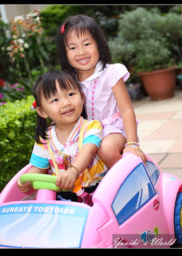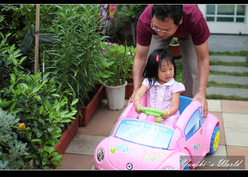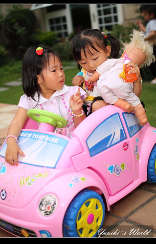 很搶手的粉紅車,雖然不能發動但仍受到小孩的青睞.