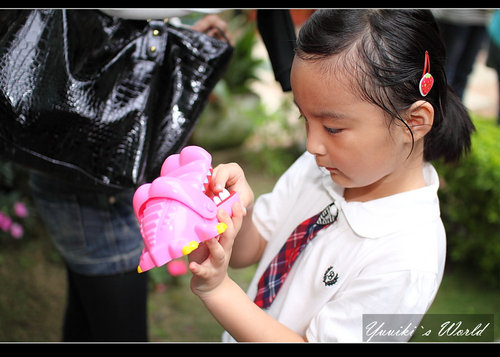 EVA發現鱷魚咬人玩具,一個人專心的研究著,也找了許多人一起同樂,當有人被鱷魚嘴巴咬到即可聽到響亮的開心聲.