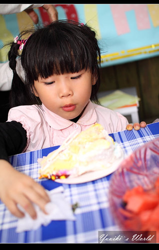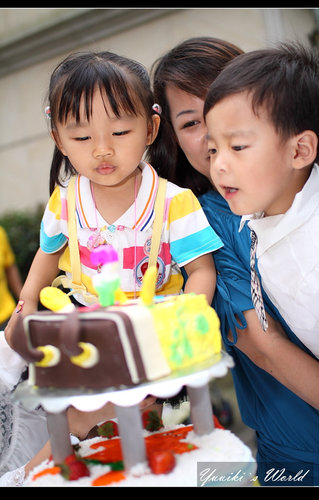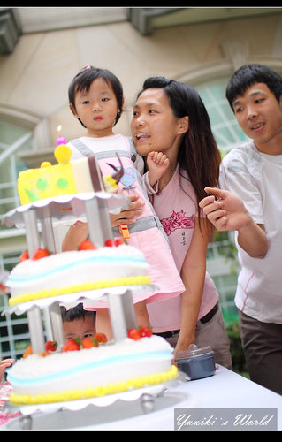 葳葳站在桌上準備吹蠟燭時,一直叫阿嬤陪她,直等到葳拔葳媽到她身邊後才肯放手換人.